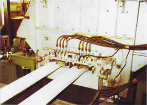 用途:该机组由工频有芯感应熔铜炉,工频有芯感应保温炉, 带坯结晶器,冷却水分配系统、引锭机、液压剪,无芯打卷机 及配套电控,液压等系统组成。用于铜合金带坯的生产,可同 时引拉双流带坯卷材。设备功能齐全,性能参数合理,可实现 全线半自动化控制。